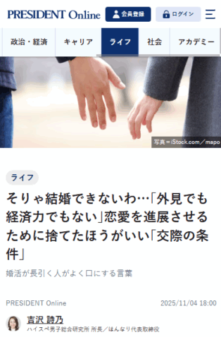 集英社によるオンラインメディア『集英社オンライン』に、「コロナ禍の婚活トレンド」「遊び人が神夫になるパートナーシップ」をテーマとした2記事を掲載いただきました。
